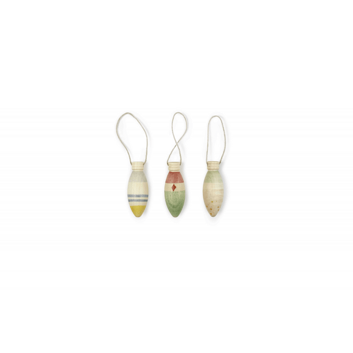 • Inhalt: 3 handbemalte Holzornamente inkl. Aufhängefaden