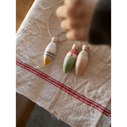 Die Winter Sparkles (Art.-Nr. 25‑280) von Grapat bringen leuchtenden Zauber in dunkle Tage. Das Set enthält drei handbemalte Holzornamente in zarter Tropfenform – filigran gestaltet, liebevoll bemalt und mit Faden zum Aufhängen versehen.